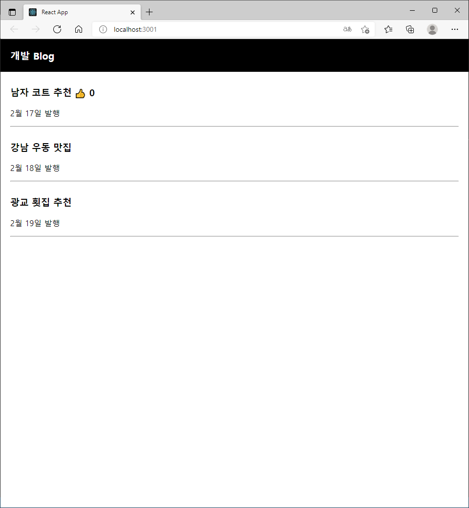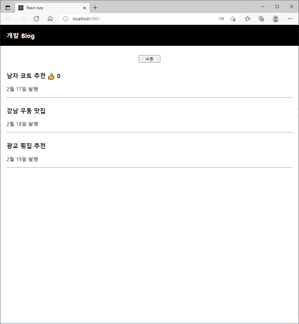 | [코딩애플] 기초 3강 숙제, state 활용하여 블로그 UI 제작 (0) | 2022.02.17 |