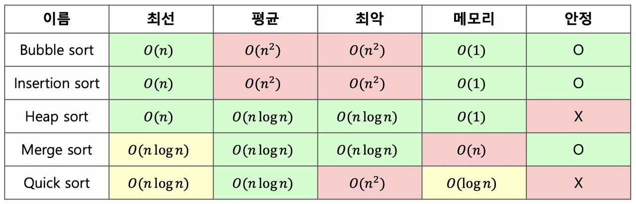* 시간 복잡도 순위 (낮을 수록 좋다.)