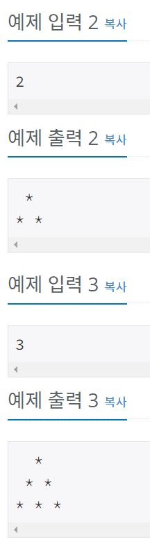 출) 첫째 줄부터 N번째 줄까지 차례대로 별을 출력한다.